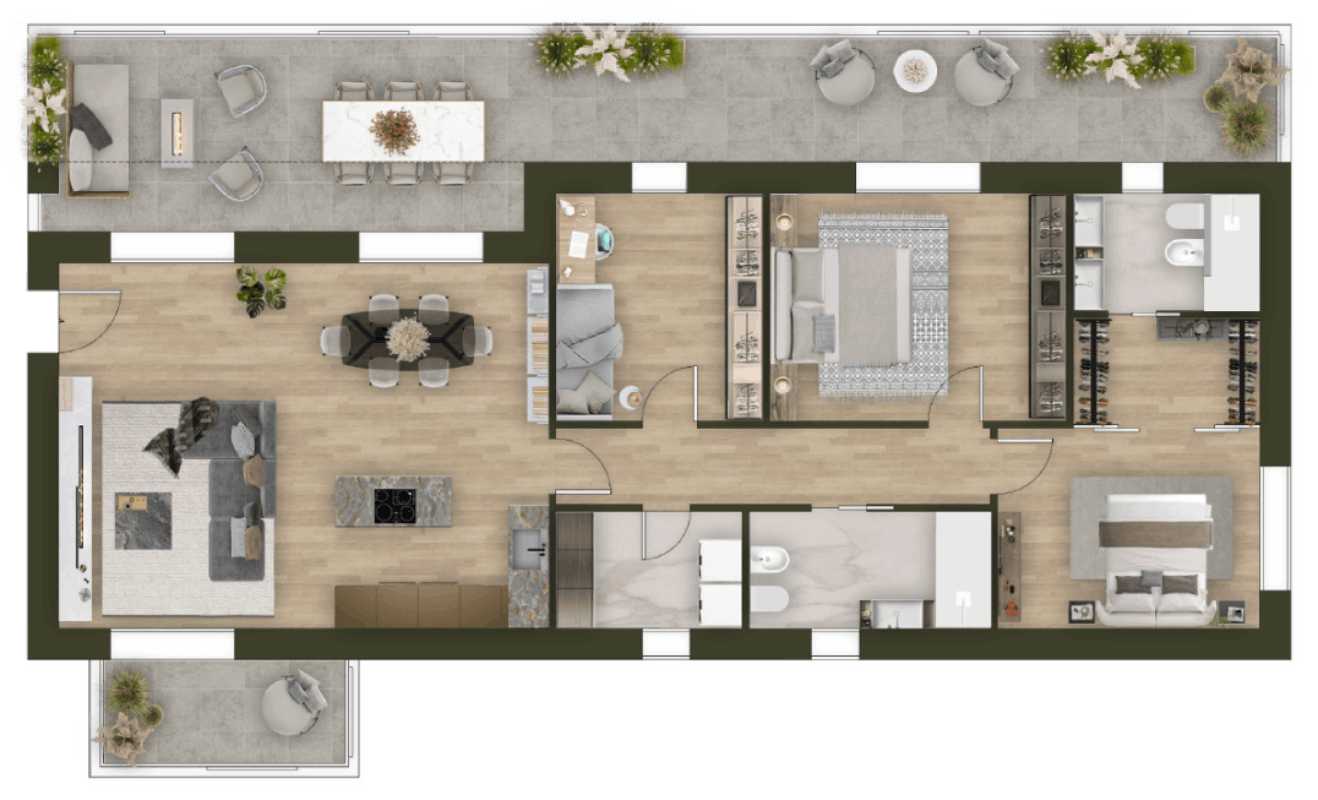 Entra ora nella tua futura casa. Con il nostro Virtual Tour immersivo puoi esplorare ogni singolo ambiente in anteprima, dai saloni agli spazi esterni.